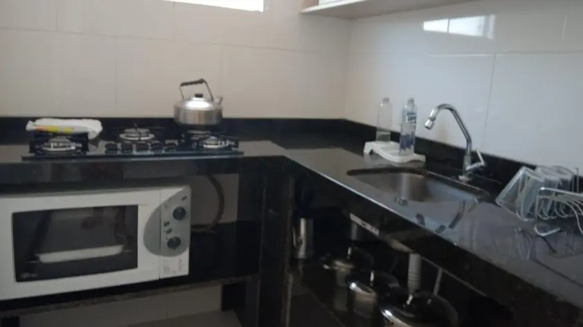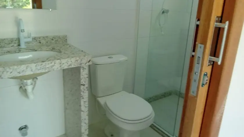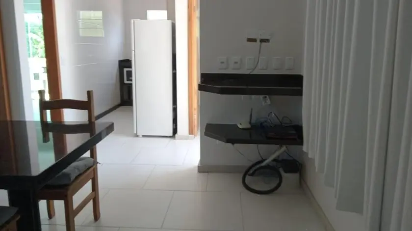 Apartamento com dois quartos, as margens da Rodovia Paulo Evadio Broering (Geral praia do Sonho/Pinheira). Apartamento com dois quartos, sendo uma suíte e ambos com ar condicionado, sala e estar/jantar, cozinha, banheiro social, uma vaga de garagem, churrasqueira compartilhada, Proximo de mercado, fármacia e restaurantes. Fica à aproximadamente 500mtrs da praia por rua pavimentada (lajota) até a praia. Pátio fechado com uma vaga de garagem coberta e privativa.