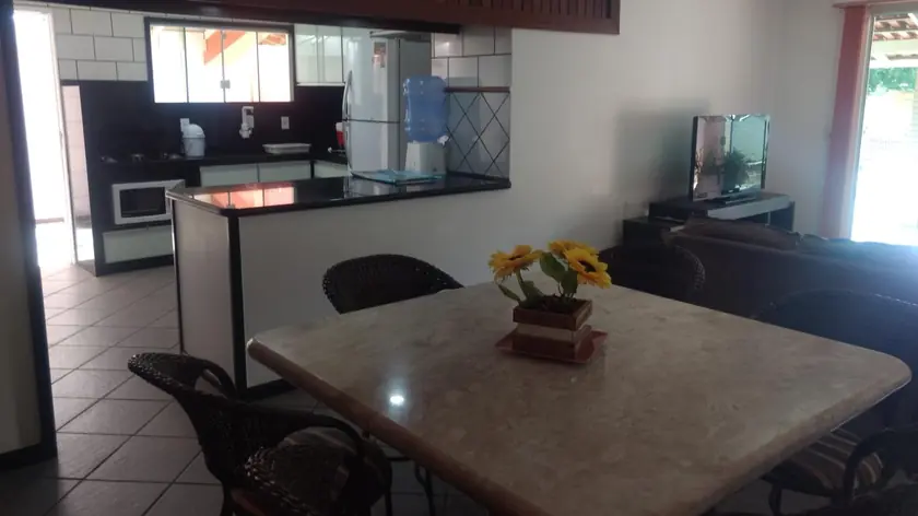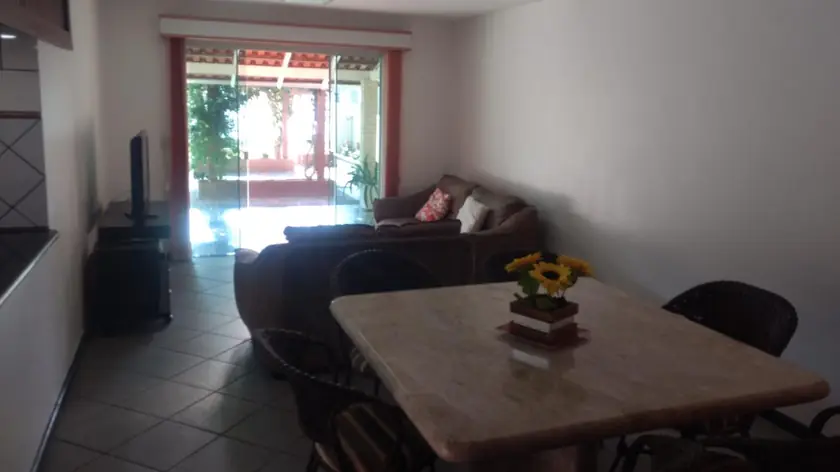 Casa no piso térreo: Cozinha completa, ambiente integrado com ampla sala de jantar e estar, mesa com quatro lugares, sofá com 5 lugares e TV. São três quartos, com uma suite completa com ar-condicionado, guarda roupas, Internet em fibra óptica; garagem coberta para dois carros com tanque e máquina de lavar roupas. 50 metros da praia, apenas atravessar a rua; Pátio fechado com sistema de CFTV externo; Rua pavimentada (lajota) e com sistema de CFTV monitorado remotamente (mantido pela associação de moradores).